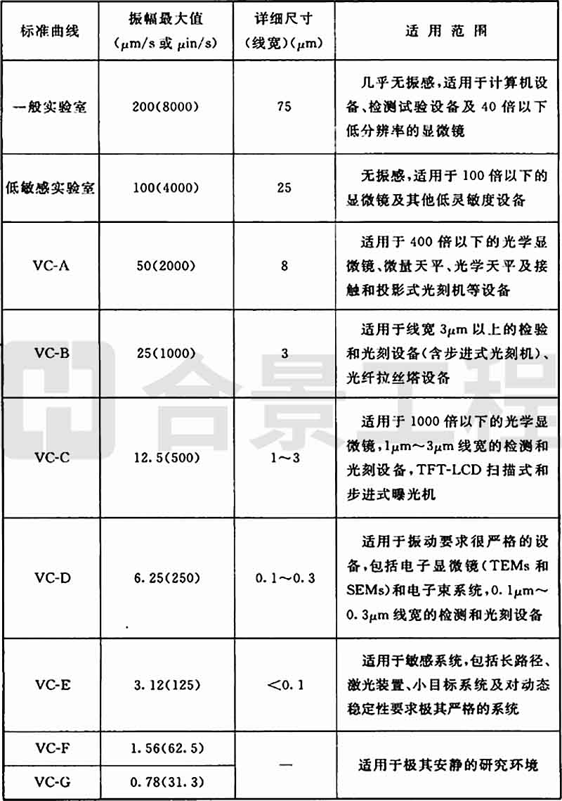 A.0.2 精密設(shè)備、儀器容許振動標準曲線的應(yīng)用應(yīng)符合表A.0.2的要求。