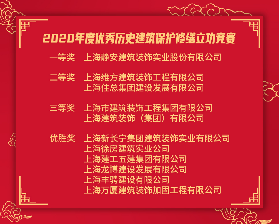 我司榮獲“2020年度優秀歷史建筑保護修繕立功競賽”二等獎